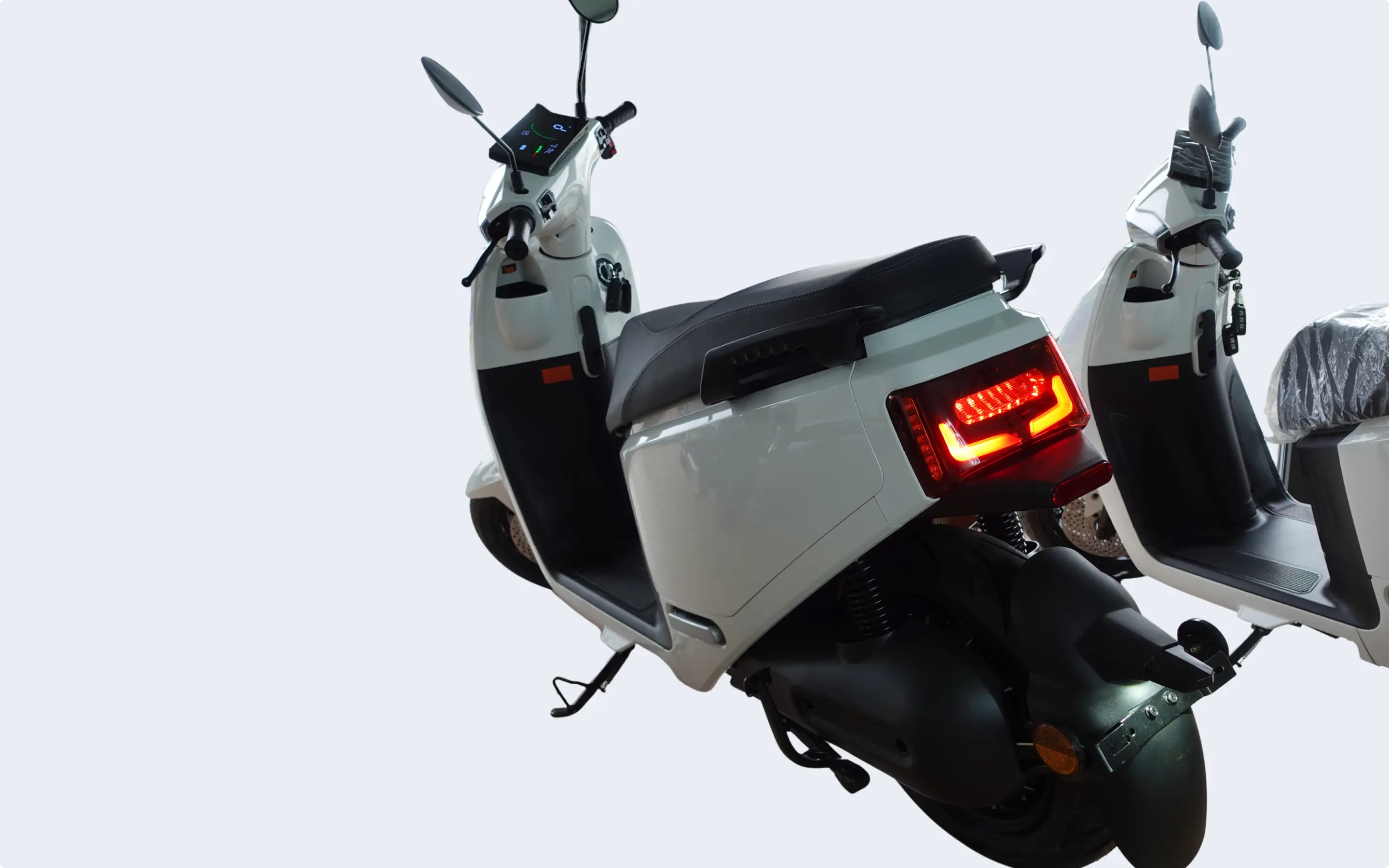 Entdecken Sie den E-Roller BELLA 2, der Eleganz, Effizienz und Nachhaltigkeit in einem Modell vereint. Mit seinem zeitlosen Design in glänzendem Weiß und schwarzem Sitz wird dieser Elektroroller zum Hingucker auf jeder Straße. Perfekt geeignet für Stadtfahrten oder längere Strecken – der BELLA 2 bietet ein umweltfreundliches Fahrerlebnis mit modernster Technologie.